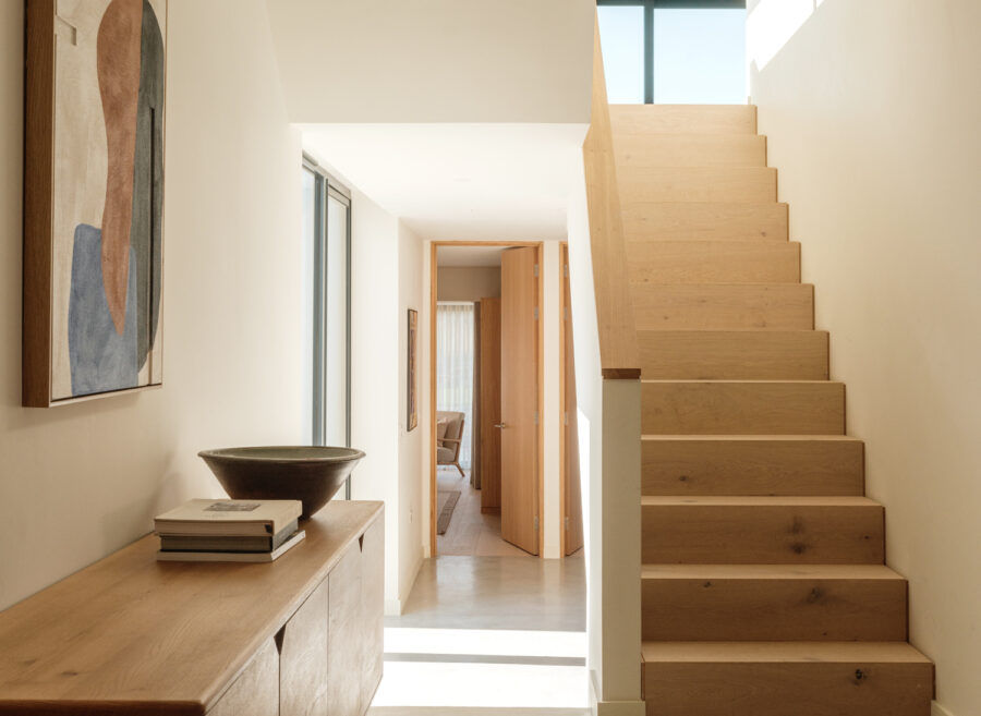 Both houses are designed with natural materials, tactile finishes and soft, warm tones — they are the perfect place to connect, relax and unwind. As you step into the houses, you are welcomed by concrete floors and soft, muted tones. Floor to ceiling windows overlook a private courtyard ahead and flood the space with natural light. The first floor has large glass doors which span the entire width of the house, leading onto a spacious west facing balcony for you to enjoy your morning coffee, or evening sundowner. We can vouch from previous retreats here, the sunsets are unrivalled.