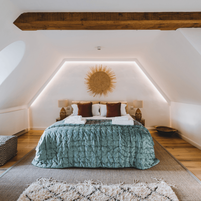 Inside there is a large open plan, double-aspect kitchen / dining room where we will eat each meal together over the weekend. There’s plenty of warmth and cosy spaces within our cottages too with open fires, log burners, soft furnishings and perfect nooks for curling up with a book and a cuppa.
